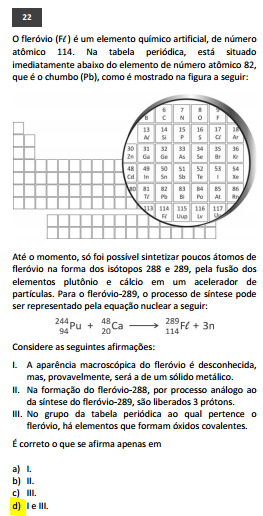 (Fuvest-2016) O fleróvio (Fl ) é um elemento químico artificial, de número ...