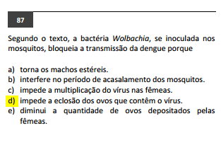 (Fuvest-2016) Segundo o texto, a bactéria Wolbachia, se inoculada nos ...