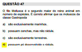 (Unicamp-2015) O filo Mollusca é o segundo maior do reino animal em ...